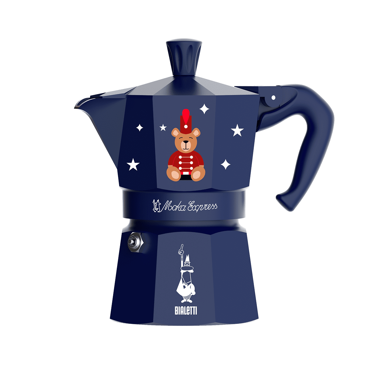 - Limited-Edition Teddy Bear Design: Adorable blue teddy bear artwork evokes childhood Christmas magic, making this Moka Express a delightful collectible.