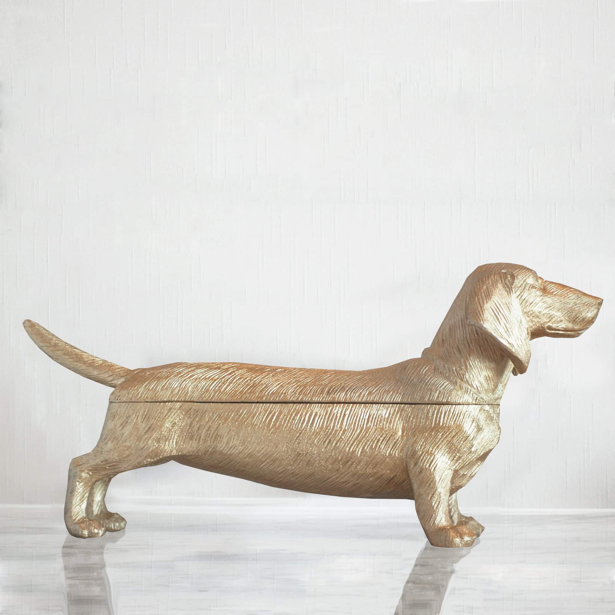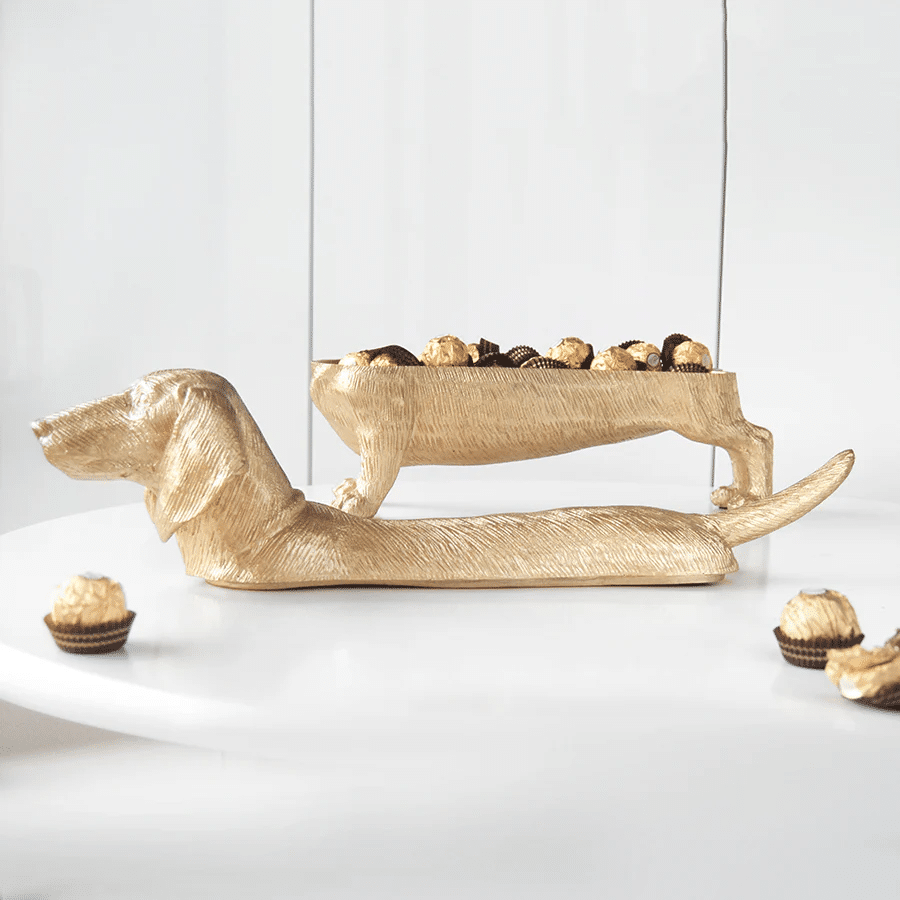 Gold Dachshund Bowl – Decorative Resin Dog by White Moose