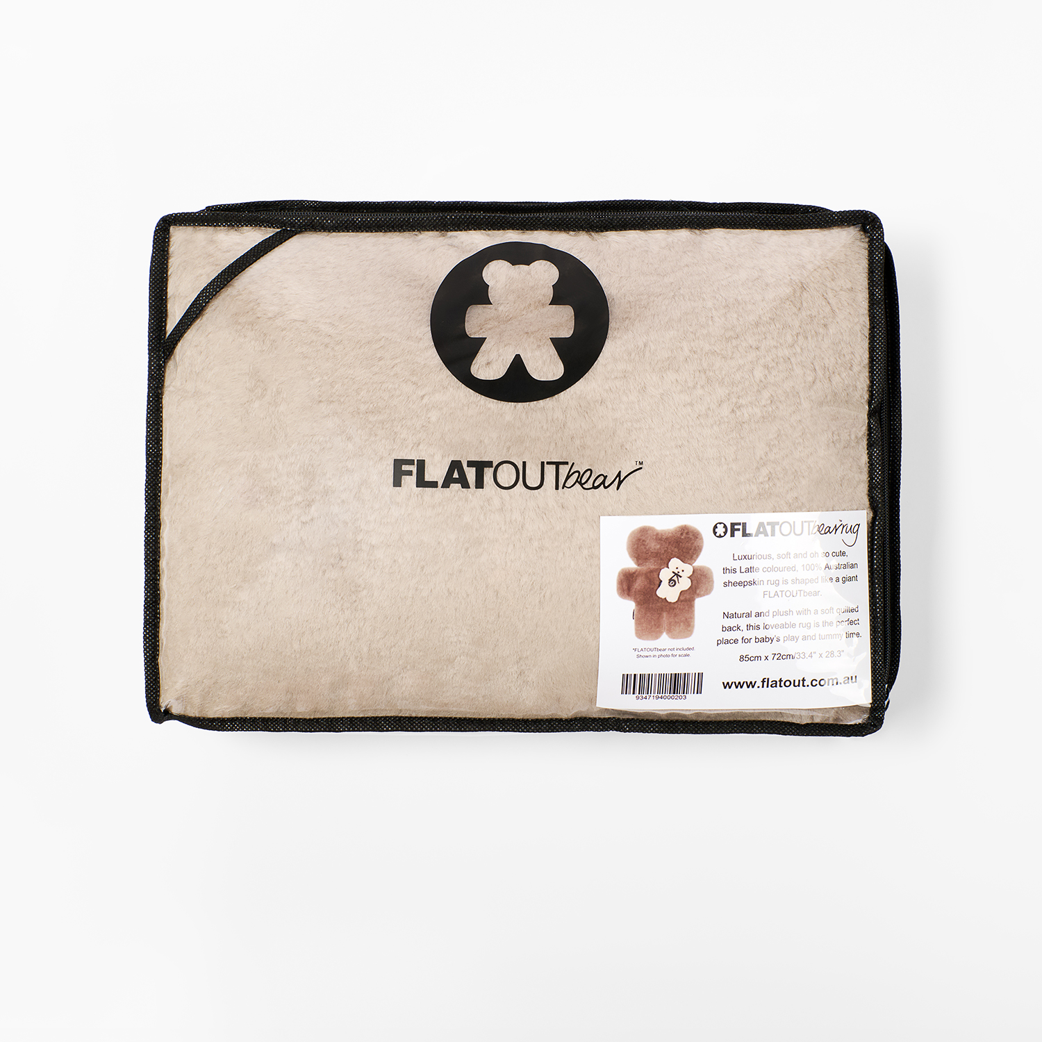The FLATOUTbear Rug Latte is handmade from 100% Australian sheepskin and shaped like a giant teddy bear — the ultimate spot for play, cuddles, and comfort.