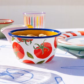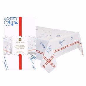 Make your table sing! This fabric tablecloth is adorned with summertime motifs dancing across the fabric, framed by a wiggle border in ravishing red. Soft and light, it’s wipe-clean enabling fast removal of any splodges and spills – helpful where little hands are concerned.