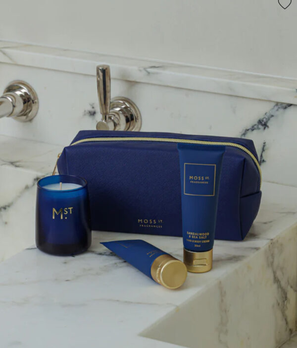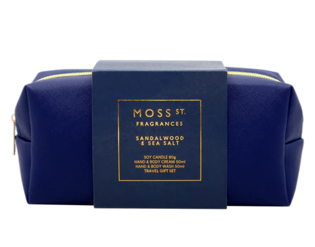 The perfect gift for those on the go. Beautifully presented in an elegant navy blue travel pouch with gold hardware.