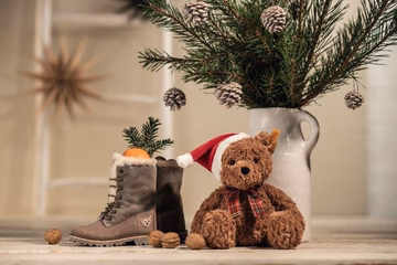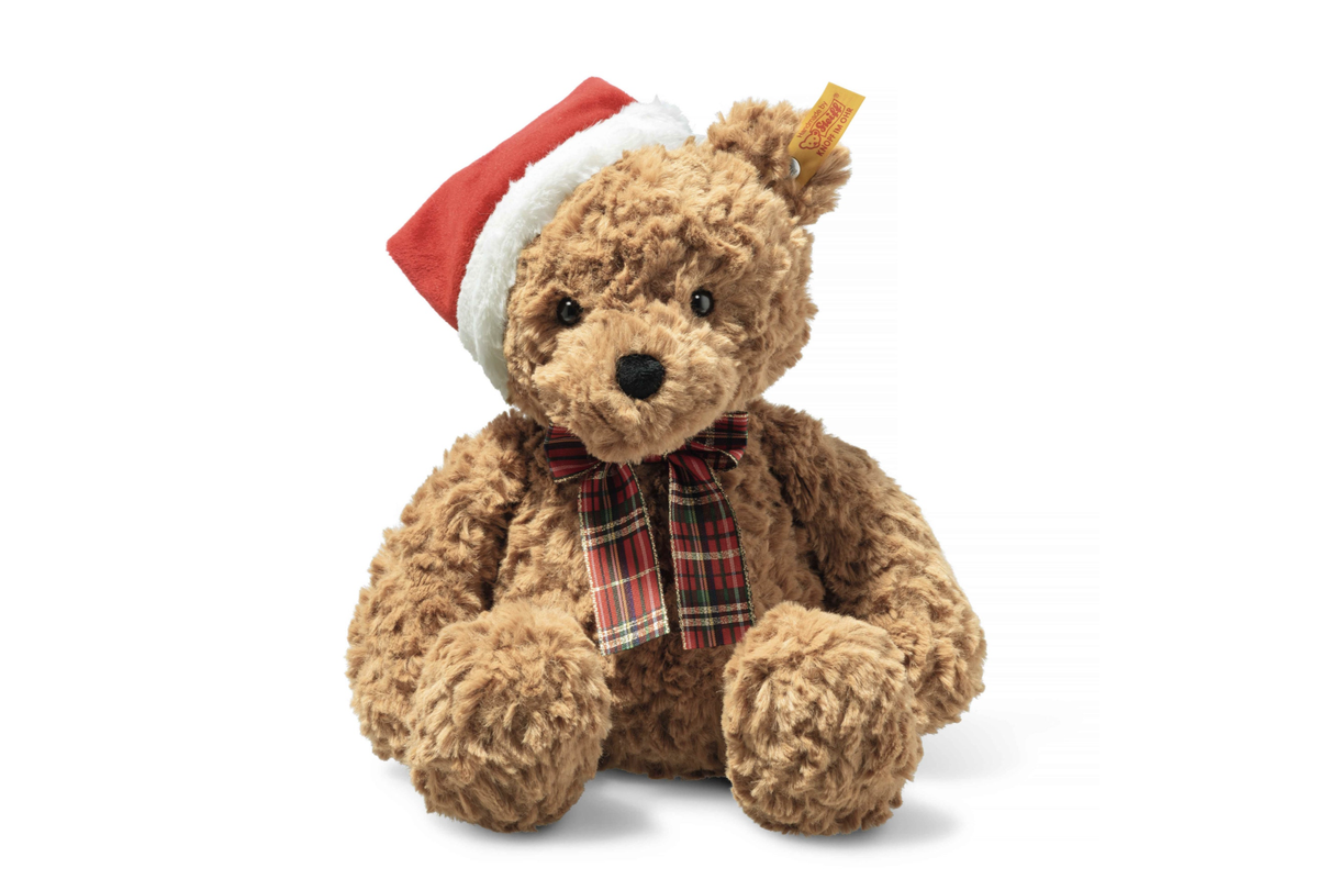 Steiff Jimmy Christmas, the 30 cm Teddy bear is the perfect Christmas gift! He gazes curiously out of his black eyes, his firm snuffly nose and his cuddly ears with stainless steel “Button in Ear” are a perfect match. Jimmy is made of wonderfully wild cuddly plush and has granulate bags in his bottom and paws, which not only provide stability when sitting, but are also a fascinating touch experience for small and large hands. The cuddliest Christmas present for anyone with a special place in your heart.