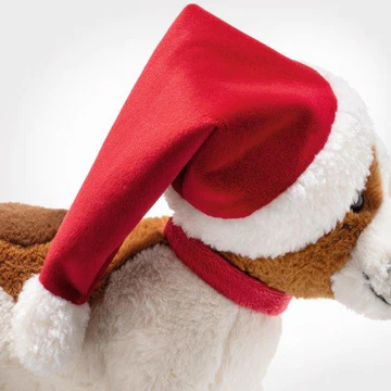 Get ready for a festive season with Snuffy, the 27 cm tall plush dog dressed up for Christmas in a cute red and white Santa hat! This brown and white canine makes the perfect present under the tree or from dear ol’ St. Nick. Snuffy loves to play indoors with the kids but also enjoys the great outdoors when given the chance. He’s a timeless and lively gift for any child.