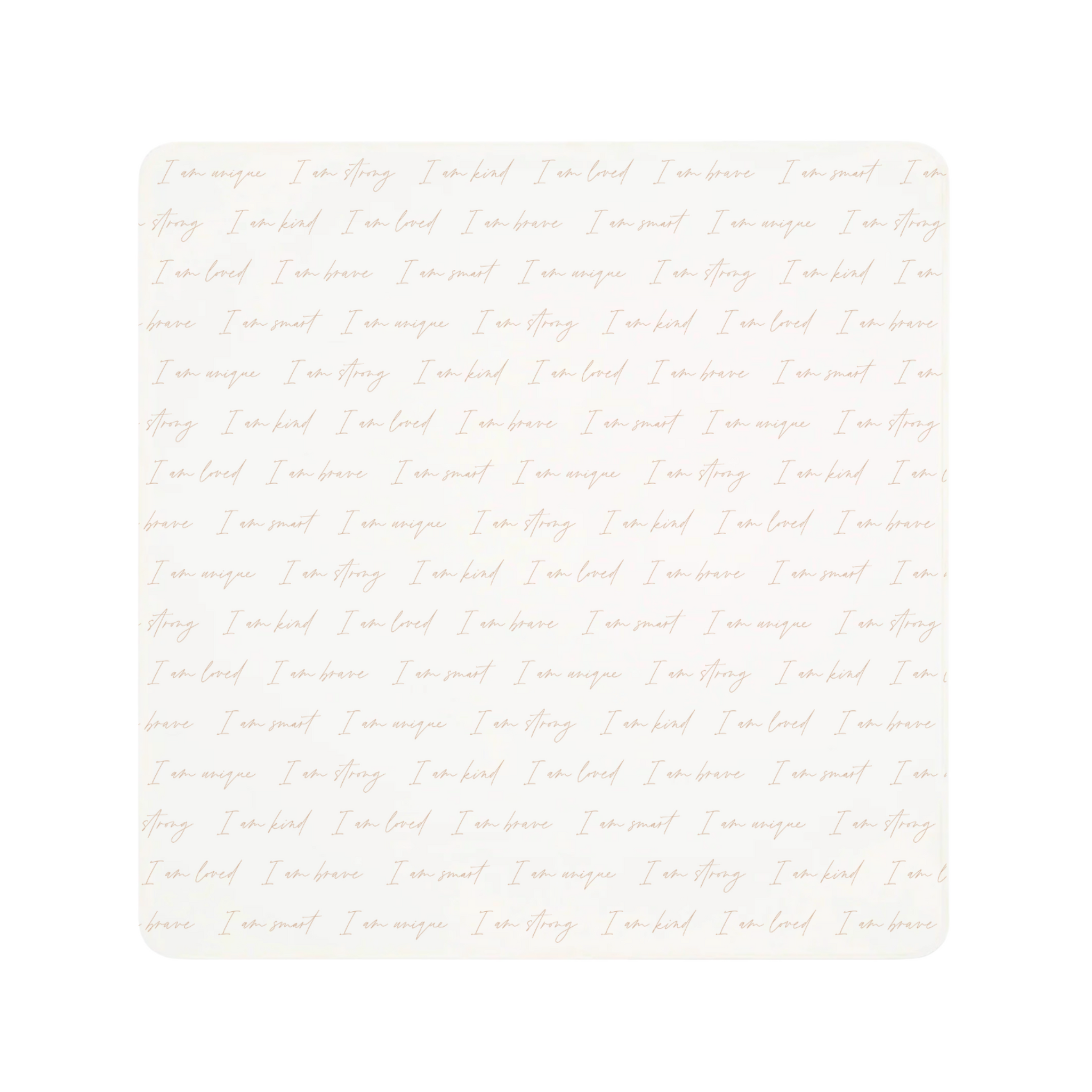 “I am unique. I am strong. I am kind. I am loved. I am brave. I am smart”, this special blanket is designed to uplift and inspire from the very beginning. These words, spoken and seen daily, help create a nurturing environment filled with love and encouragement.